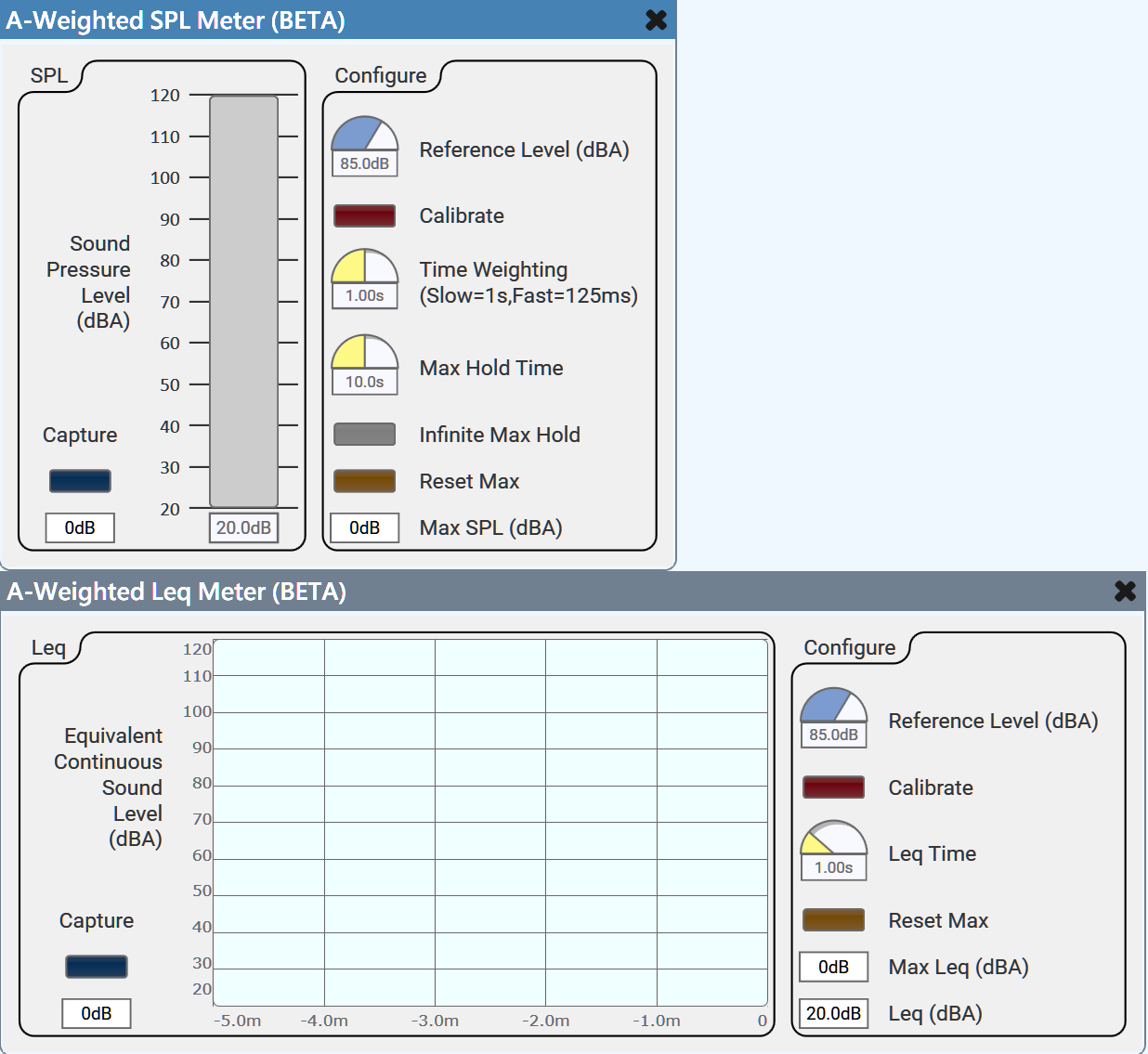 A或C加權的SPL / LEQ表頭,如果搭配多支量測Mic輸入,在控場時直接可以監控每個點的音壓變化。